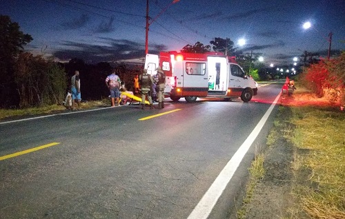 Duas pessoas que seguiam numa motocicleta na BR-330, sentido Ubatã, ficaram feridas após o veículo que elas estavam ser atingido na traseira por um ônix, branco, placa não anotada. O acidente ocorreu no final da tarde deste domingo (21), numa reta próximo a antiga Fazenda Iacina. Com o choque, os ocupantes da motocicleta – identificados como Lourival Pereira de Souza (Gazo) e uma mulher de prenome Diana – caíram sobre a pista e sofreram vários ferimentos. Conforme as informações apuradas pelo GIRO, o estado de saúde das vítimas é delicado. Lourival sofreu múltiplas fraturas e um corte na cabeça. Diana também sofreu um corte na cabeça. O Serviço de Atendimento Móvel de Urgência (SAMU) foi acionado e conduziu os feridos ao Hospital Geral Prado Valadares, em Jequié. Segundo a Polícia Militar de Barra do Rocha, o condutor do ônix não foi encontrado no local.