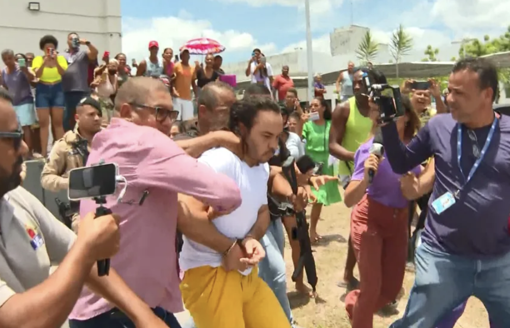 Foto: TV BahiaNesta quarta, durante a transferência de Ederlan para o Centro de Observações Penais (COP), que fica no complexo penitenciário, não houve novos protestos. Os delegados do caso afirmam que ele confessou o crime. No entanto, a defesa de Ederlan nega a confissão.