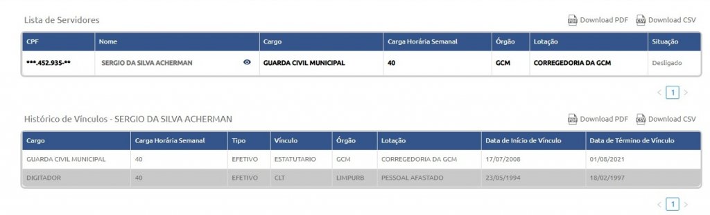 Conforme informaçãos confirmadas pelo BN, Acherman atuou como guarda civil municipal por 13 anos, entre 2008 e 2021, lotado na Corregedoria da GCM. Ainda assim, não é possível confirmar se a relação entre os suspeitos foi iniciada neste período.